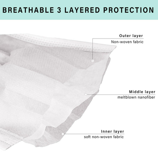 White Disposable Face Masks 100 Pcs White Face Mask 3 Ply Protection Masks