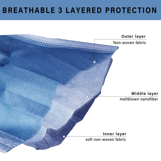 Borje® Blue Disposable Face Mask 100 Pcs Blue Face Masks 3 Ply Protection Masks