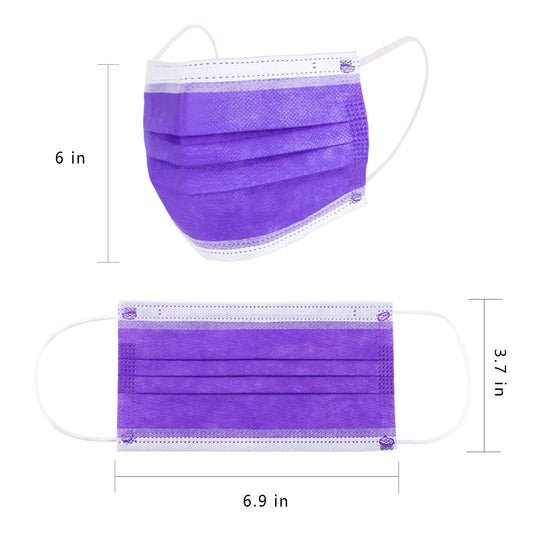 Borje® Purple Disposable Face Mask 100 Pcs Purple Face Masks 3 Ply Protection Masks