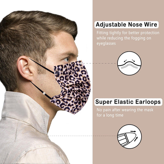 Disposable Face Masks, Cheetah Print, 50 Pcs, Plastic Bagged