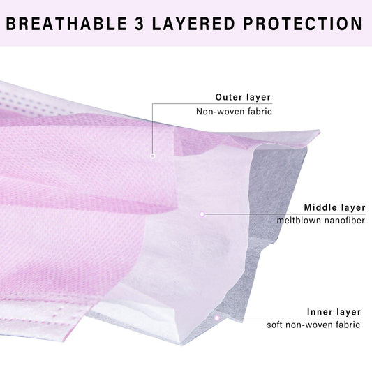 Borje® Pink Disposable Face Mask 100 Pcs Pink Face Masks 3 Ply Protection Masks
