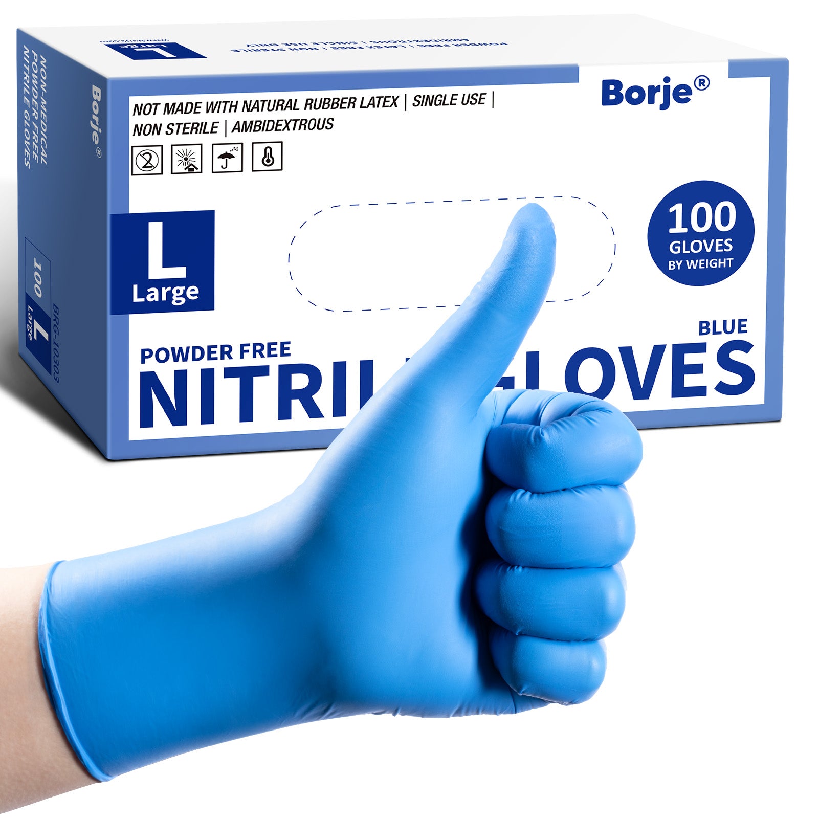 Borje® - 100 Pcs Nitrile Disposable Gloves, Blue, Latex & Powder-Free, Food Safe, Textured Fingertips